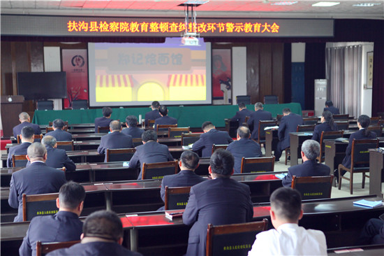 為推動政法隊伍教育整頓工作穩(wěn)步開展,扶溝縣檢察院堅持教育先導(dǎo),思想發(fā)動,通過開展警示教育活動,為查糾整改環(huán)節(jié)打好思想基礎(chǔ)。4月14日下午,扶溝縣檢察院組織全體干警集中觀看了《記憶中的燴面》《法不容私》《“保護傘”自身難保,“坐地虎”坐進監(jiān)牢》三部警示教育片,充分發(fā)揮以案說法說紀和警示震懾作用,教育引導(dǎo)干警增強紀律觀念和規(guī)矩意識,心存敬畏之心,筑牢拒腐防變思想防線。