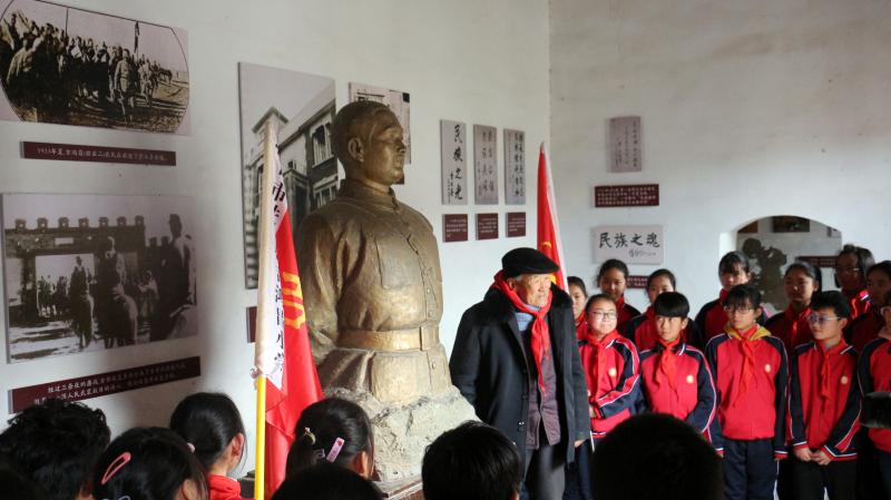 在全國上下掀起黨史學(xué)習(xí)教育熱潮之際,近日,來自吉鴻昌小學(xué)六(1)班的30名孩子,在學(xué)校少先隊(duì)輔導(dǎo)員的帶領(lǐng)下來到呂潭學(xué)校舊址,開展主題為“弘揚(yáng)鴻昌精神、傳承紅色基因”的主題隊(duì)會活動,參觀了吉鴻昌學(xué)校和吉鴻昌故居,循著英雄的足跡,親身感受吉鴻昌精神的內(nèi)涵,接受一場紅色的精神洗禮。期間,在吉鴻昌將軍塑像前,何國志老人生動地講解了吉鴻昌將軍親手?jǐn)捞弥?、?chuàng)辦吉鴻昌學(xué)校、首次向中國人介紹電視等身前事跡,在場的孩子感動得熱淚盈眶。 “聽了何爺爺?shù)闹v述,我被吉鴻昌將軍的事跡深深感動,長大后也要成為一名像他一樣的人!”張晨曦同學(xué)說。