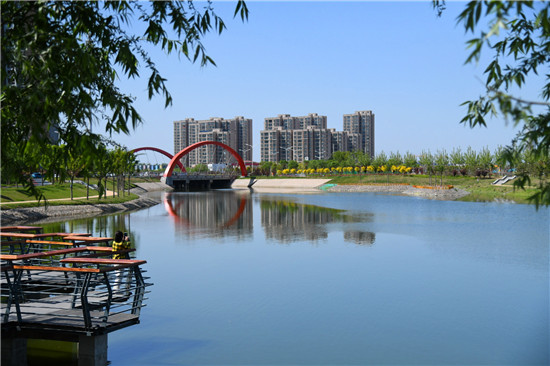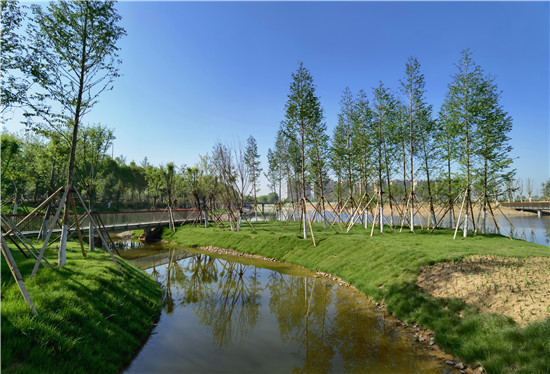眼下雖不是詞中所描繪的初春時節(jié),但是暮春的水系風(fēng)光更具詩情畫意。女媧路魚翔湖是一處以水凈化、水景觀、水科普為主的濱河濕地游園。漫步于此,新綠點綴其中,步道曲徑通幽,河水清澈透明,頓覺神清氣爽。沙河玉盤落珠節(jié)點,曲廊環(huán)繞,波光鱗鱗,垂柳慢舞,河流猶如飄帶蜿蜒流淌,一路步行聞花香聽鳥鳴,繪出一幅唯美畫卷。②9