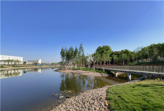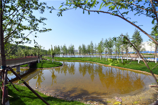 與城區(qū)的各個游園相比,此處稍顯僻靜,翠陰蒙密,再加上流水淙淙,更有風(fēng)物清幽之感。閑暇之時,三三兩兩的居民結(jié)伴散步,大自然的靜謐與靈動在這里相交相融,讓人心曠神怡。