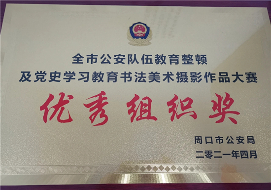 近日,扶溝縣公安局在全市公安隊(duì)伍教育整頓及黨史學(xué)習(xí)教育書(shū)法美術(shù)攝影作品大賽中榮獲優(yōu)秀組織獎(jiǎng),同時(shí),該局推薦報(bào)送的多部書(shū)法攝影作品大賽中也榮獲多個(gè)獎(jiǎng)項(xiàng)。其中,書(shū)法類(lèi)榮獲一等獎(jiǎng)1名、二等獎(jiǎng)2名、三等獎(jiǎng)1名、優(yōu)秀獎(jiǎng)1名;美術(shù)類(lèi)榮獲二等獎(jiǎng)2名、三等獎(jiǎng)4名;攝影類(lèi)榮獲二等獎(jiǎng)1名、三等獎(jiǎng)1名。