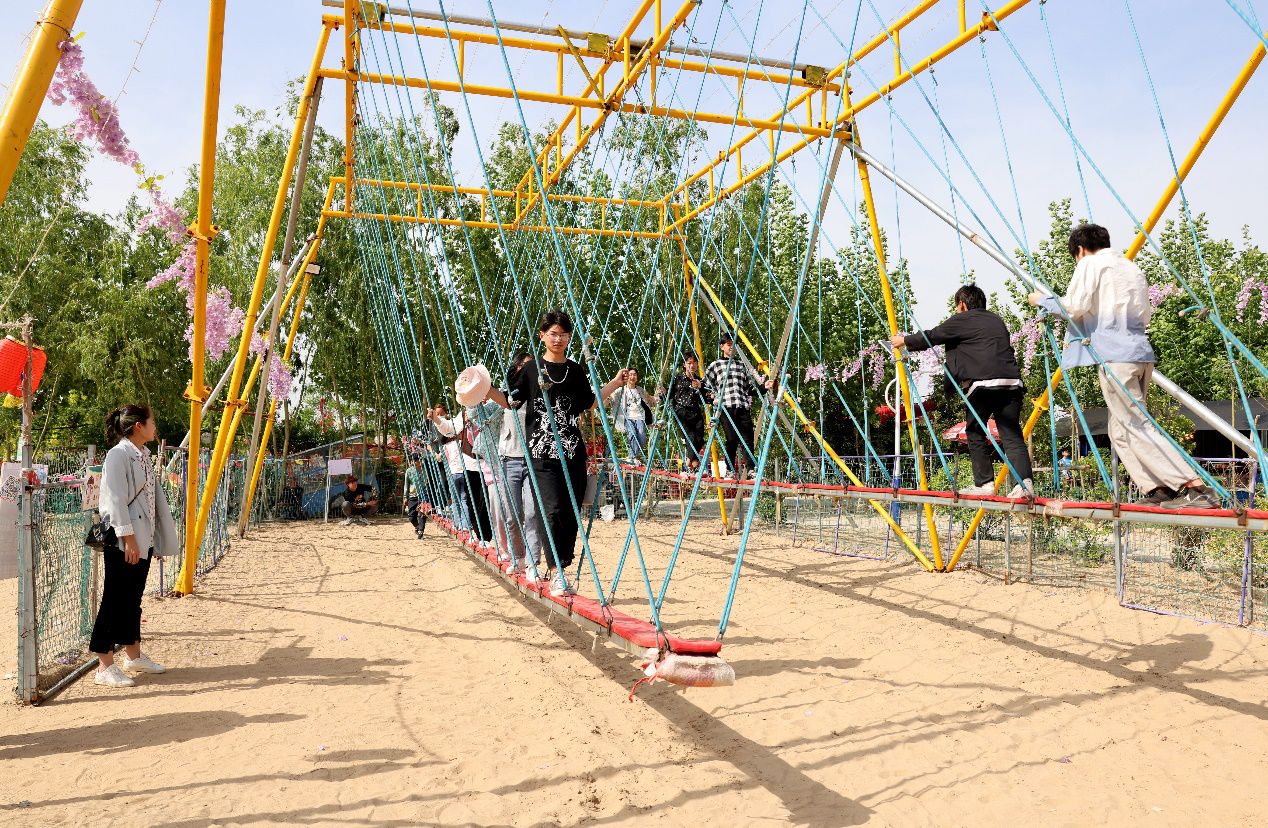 這個度假村建于2020年初,占地100多畝,擁有50多項娛樂休閑項目,包括蒙古包、農家院等,整個游樂場處于沙灘之中,萬里平原之中的沙灘風情更有韻味。來看看這里都有啥好玩的?
