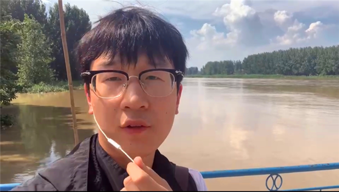 記者王丹、房杰等來到賈魯河橋小閘附近進行直播
