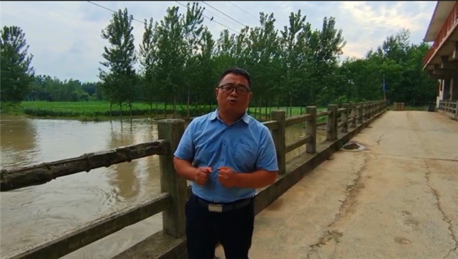 記者王丹在周口市賈魯河橋段采訪