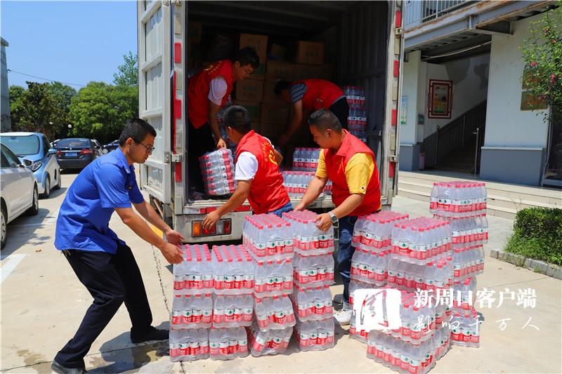 當(dāng)天中午,掛著印有“昨天大家助我脫貧,今天我為救災(zāi)出力!”條幅的防汛救災(zāi)物資運(yùn)輸車抵達(dá)周口港區(qū)。“要不是前兩天防御臺風(fēng)‘煙花’,我們早就來了?!甭」糯妩h支部書記段長春一下車就連忙慰問眾人。一同前往的還有6位年輕力壯的志愿者,他們不辭勞苦,和港區(qū)消防、城管人員一起頂著烈日,用了半個(gè)多小時(shí)將滿車物資搬運(yùn)到位。