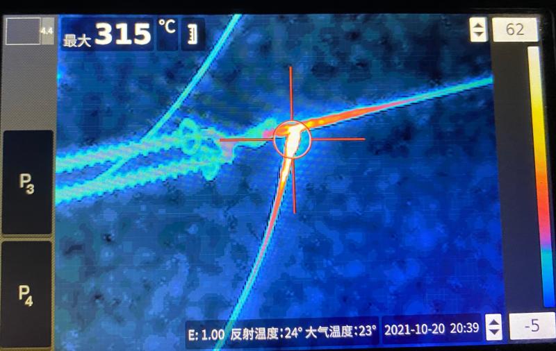 “蓮鄺線#19桿塔A相引流板連接螺栓發(fā)熱315℃,這屬緊急缺陷,需要立即處理!”10月20日晚,國(guó)網(wǎng)周口供電公司輸電運(yùn)檢中心在對(duì)110千伏蓮鄺線六級(jí)電網(wǎng)風(fēng)險(xiǎn)保電夜巡過程中,發(fā)現(xiàn)蓮鄺線#19桿塔A相引流板存在打火現(xiàn)象。