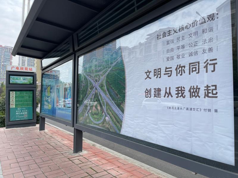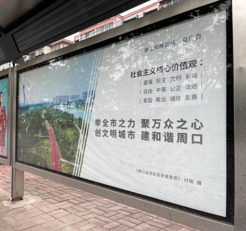 周口市公交總公司總經理助理朱懷彬表示,為確保文明標語能讓市民抬眼可見、駐足即觀,目前,我市中心城區(qū)公交候車臺的公益廣告牌投放覆蓋率已超過50%?!盁ㄈ灰恍碌墓徽九_,既扮靚了周口的城市面貌,提升了市民的出行體驗,又潛移默化地把社會主義核心價值觀根植于市民內心?!敝鞈驯蛘f。②10