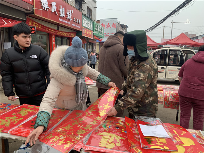春節(jié)將至,不斷映入眼簾的喜慶“?!弊钟骋r著摩肩接踵的人群。趕集時(shí),家家都要買幾張年畫、幾副春聯(lián),今年,以“虎”為主題的年畫春聯(lián)自然成了主角?!斑@個(gè)虎頭年畫今天已經(jīng)脫銷了,這個(gè)‘年年有余’的也喜慶。”攤主王大姐一邊幫顧客挑年畫一邊笑著說(shuō)。年前,她早早囤好了近百種樣式的老虎年畫,現(xiàn)在看來(lái)還是不夠賣。除了過(guò)年必備的年畫春聯(lián),她還準(zhǔn)備了紅燈籠、紅燭等,也十分暢銷。