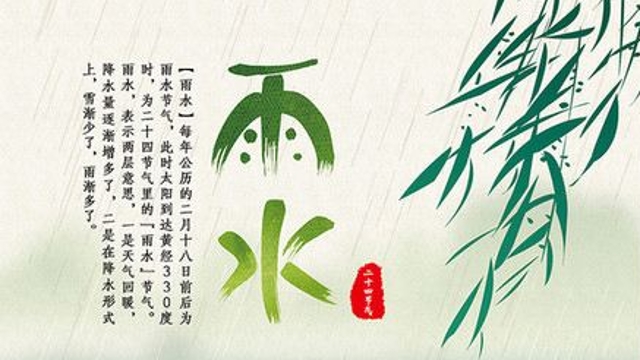雨水(The rains),是二十四節(jié)氣之中的第二個(gè)節(jié)氣,位于每年正月十五前后(公歷2月18-20日),太陽(yáng)到達(dá)黃經(jīng)330°,是為二十四節(jié)氣的雨水。此時(shí),氣溫回升、冰雪融化、降水增多,故取名為雨水。雨水節(jié)氣時(shí)段一般從公歷2月18日或19日開(kāi)始,到3月4日或5日結(jié)束。雨水和谷雨、小雪、大雪一樣,都是反映降水現(xiàn)象的節(jié)氣。