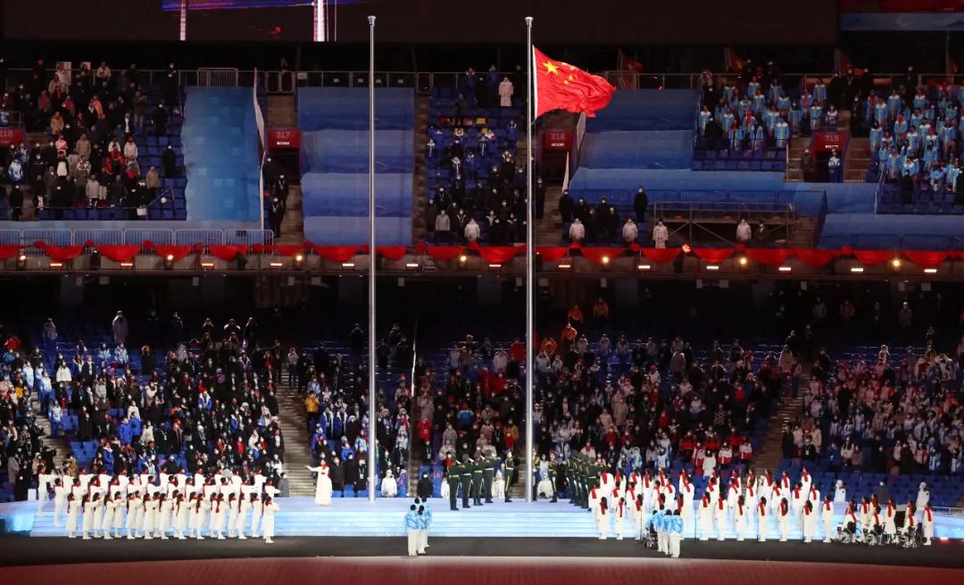 這是中華人民共和國(guó)國(guó)旗在開(kāi)幕式上升起。新華社記者 杜瀟逸 攝