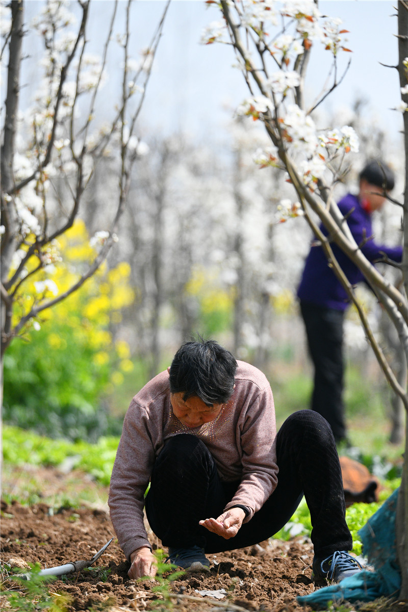 “谷雨前后,種瓜點豆。”距離谷雨節(jié)氣還有20多天,市城鄉(xiāng)一體化示范區(qū)文昌辦事處陳灘村的農(nóng)民趁著雨后好墑情,在花開如雪的梨園深處除草、點種黃瓜籽。周口日報·周道客戶端記者 梁照曾 攝