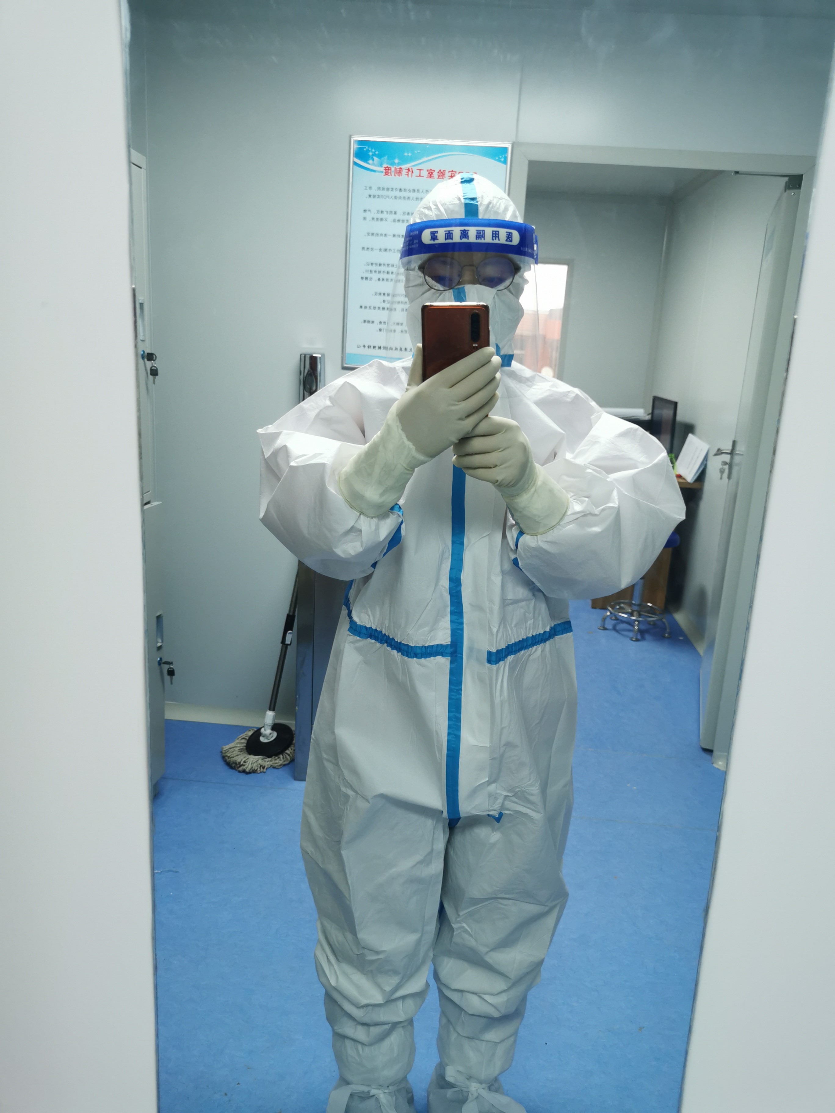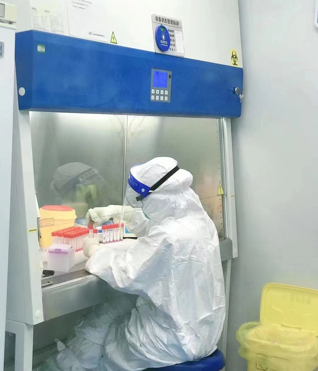 實(shí)驗(yàn)室的三級(jí)防護(hù)包括穿著連體防護(hù)服,戴N95口罩、雙層手套、鞋套和護(hù)目鏡。由于核酸檢測(cè)不同于其他檢測(cè),PCR 實(shí)驗(yàn)室里機(jī)器不間斷運(yùn)行,即使開著空調(diào),室內(nèi)溫度也有27℃~28℃。密不透風(fēng)的防護(hù)裝備一穿就是6個(gè)小時(shí)~8個(gè)小時(shí),感染風(fēng)險(xiǎn)大、操作過程長(zhǎng),每次結(jié)束工作,姜等等渾身都會(huì)被汗水浸透。核酸提取、體系配制、擴(kuò)增檢測(cè)……每道程序背后,都充滿了高風(fēng)險(xiǎn)。接收的樣本有鼻咽拭子,鼻咽拭子直接震蕩混勻處理,取一定量到核酸提取板,提取完成,加一定量提取液到透明的八聯(lián)管內(nèi),每一步都要做到無一缺漏。