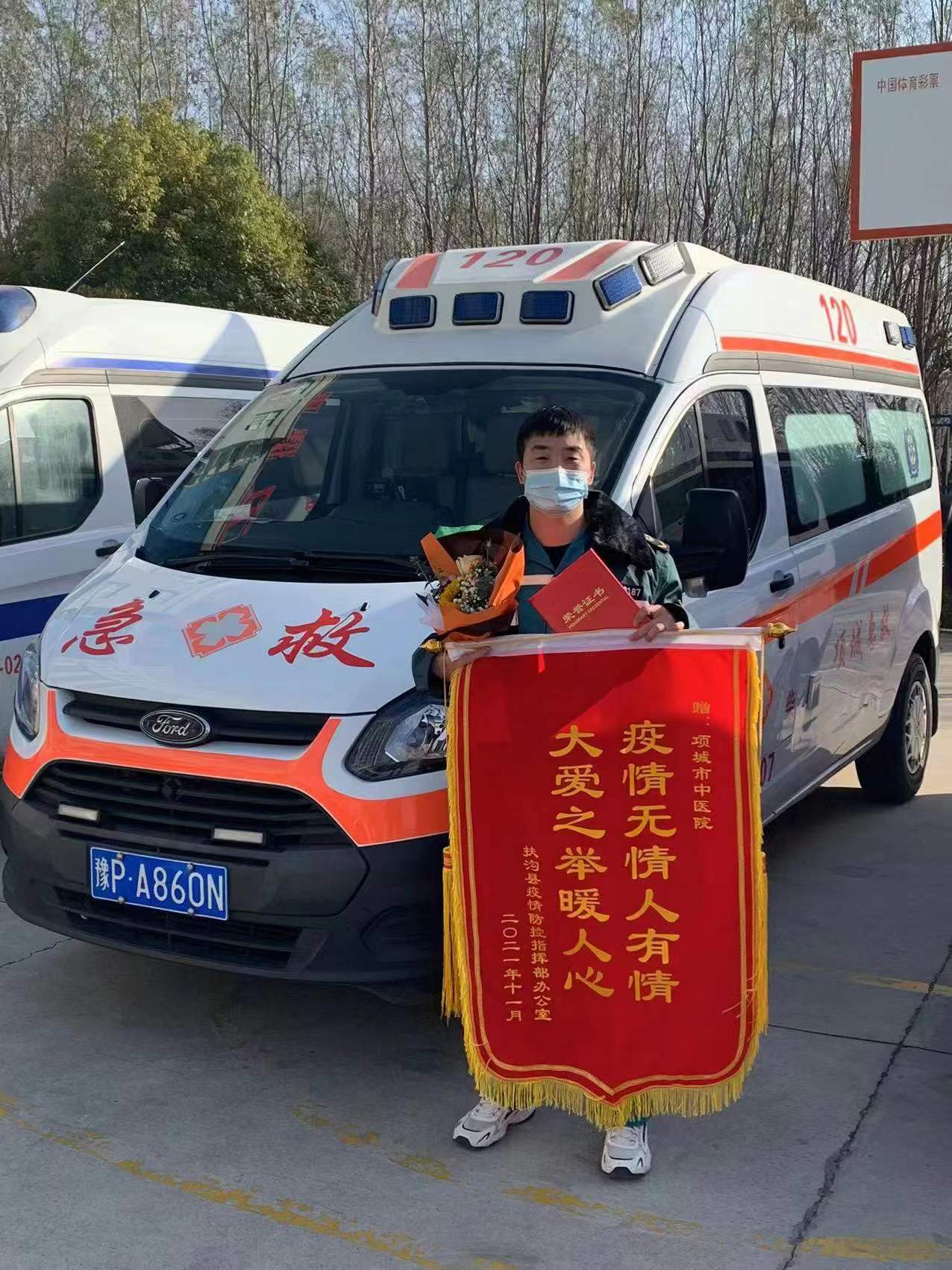 疫情就是戰(zhàn)場。新冠肺炎疫情發(fā)生以來,項(xiàng)城市中醫(yī)院急救120按照抗擊新冠肺炎疫情的工作需要,專門安排一輛負(fù)壓救護(hù)車,負(fù)責(zé)接診轉(zhuǎn)運(yùn)全縣區(qū)域范圍內(nèi)發(fā)熱病人、疑似病人或確診病人密切接觸人員。防疫期間,靳富壘大部分時(shí)間都奔波在路上,把一批又一批患者送到醫(yī)院。沒有上下班時(shí)間,有時(shí)半夜睡得正酣一個(gè)電話就得立刻出發(fā),有時(shí)送完患者回來只能吃一桶泡面,在車上“歪”幾分鐘。