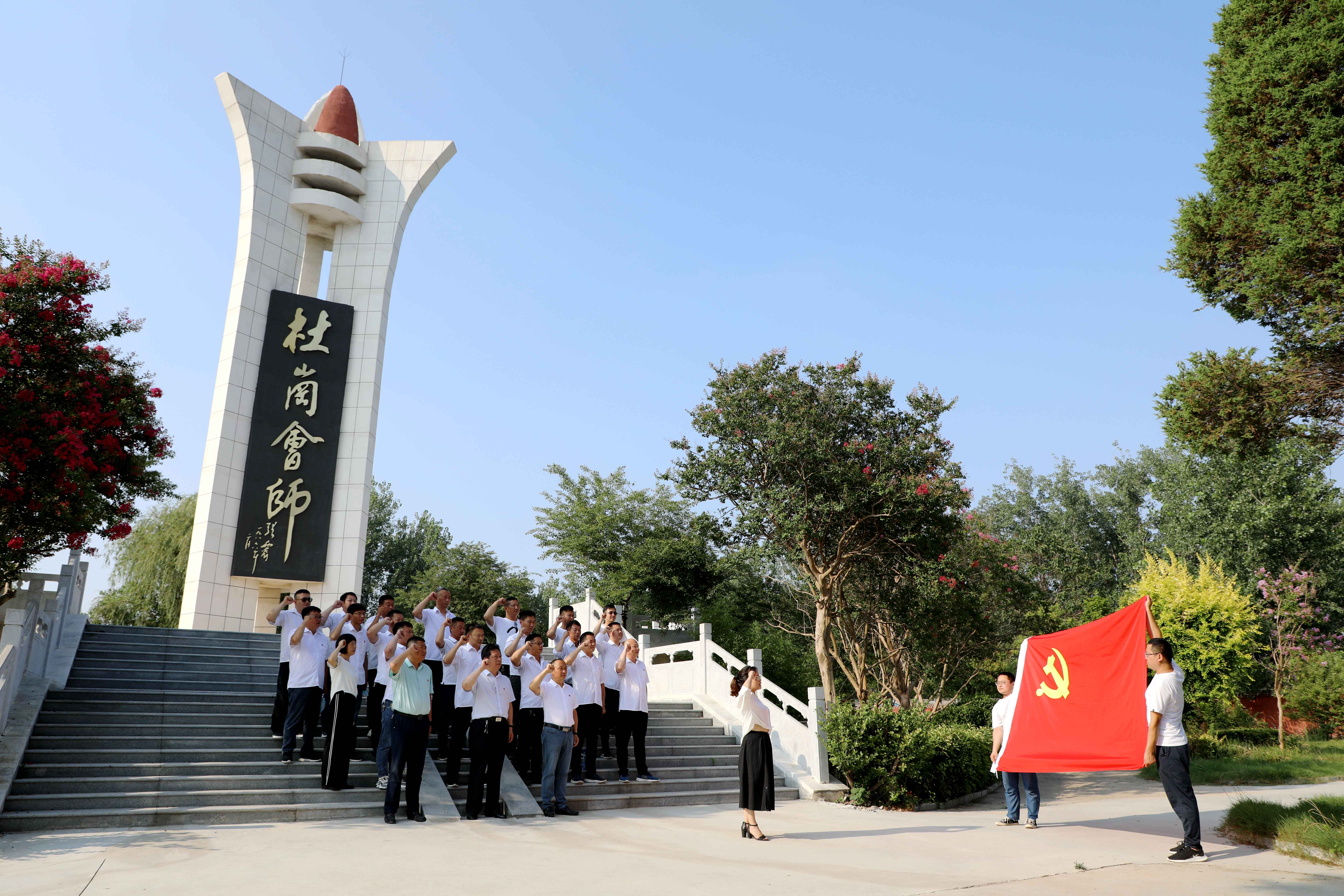 在杜崗會師紀念碑下,黨員面對鮮紅的黨旗,高舉右拳,重溫入黨誓詞,重憶入黨初心,在錚錚誓言中再燃奮斗激情。
