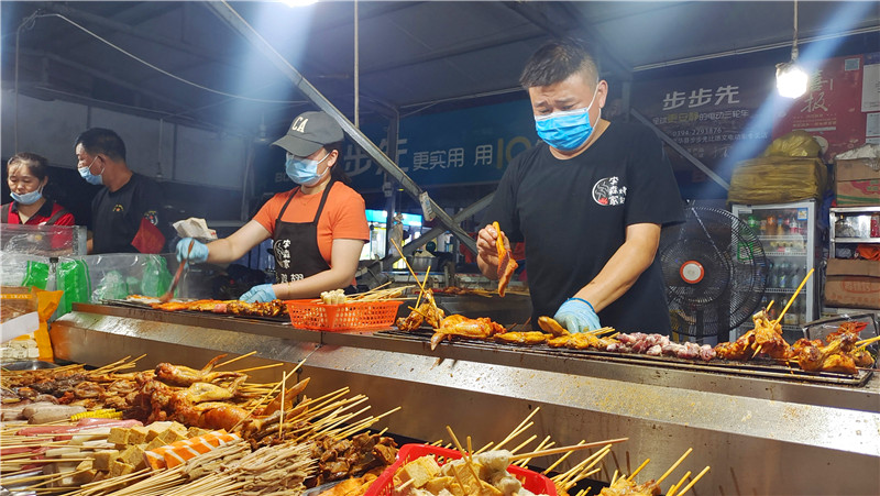 采訪中,記者還了解到,在原縣委黨校地?cái)傄故邪l(fā)展壯大的過(guò)程中,西華縣商務(wù)局、城管局、市場(chǎng)監(jiān)管局等部門(mén)牽頭引導(dǎo)商戶在西華縣高鐵站、上億美食廣場(chǎng)和西華縣南廣場(chǎng)設(shè)置地?cái)傄故校M(jìn)行規(guī)范管理,繁榮西華“夜經(jīng)濟(jì)”,共設(shè)置190余家攤位,日均消費(fèi)35萬(wàn)元左右。①5