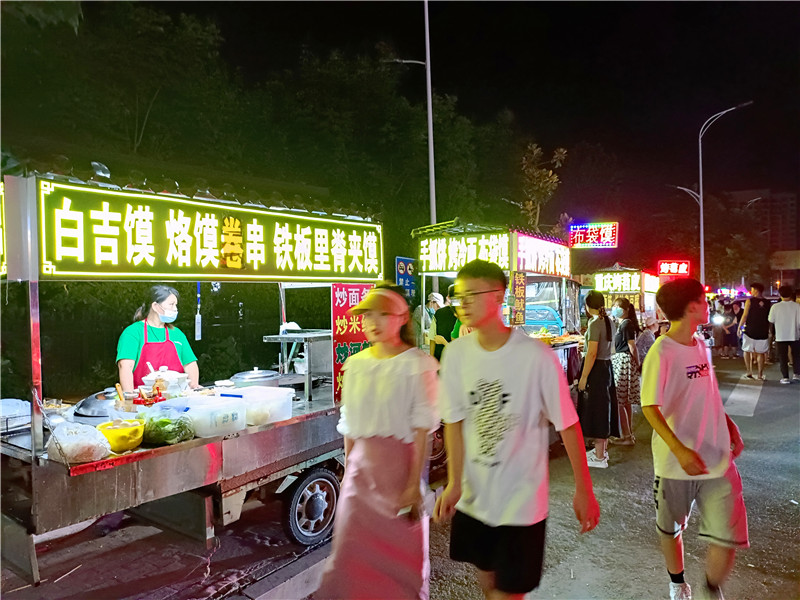 疫情散去,終歸風平浪靜。城市夜晚被賦予更斑斕的色彩、更旺盛的生命力,夜消費、夜休閑、夜文化在鹿邑市民生活中不可或缺。為進一步促進“夜經濟”健康發(fā)展,鹿邑縣商務局、市場監(jiān)管局、城市管理局等有關部門審慎包容、精準施策,堅持管理和服務并重,因地制宜,完善城市便民疏導點經營秩序,建立臨街餐飲店、夜市小吃外擺準入機制。該縣城區(qū)原有8個便民疏導點,經過實地調查論證,有關部門又將新近自然形成的3個商販聚集地設立為便民疏導點。同時,以個人申請、實地調查的方式對沿街門店外擺經營進行放開。