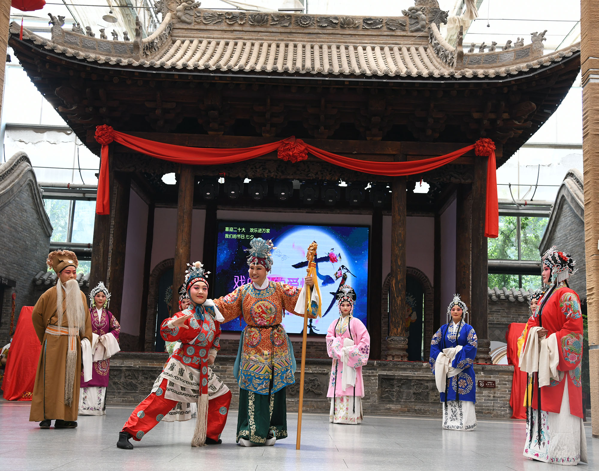 ?8月3日上午,市豫劇團團長、戲劇藝術(shù)家肖秀蓮帶領演員們在建業(yè)大食堂演出《五世請纓》中的《一家人歡天喜地》一折。