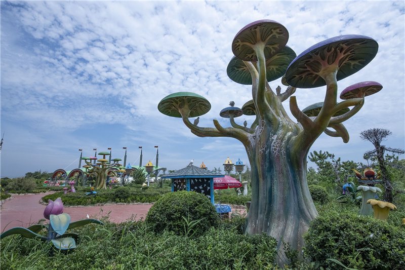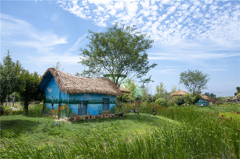 藍(lán)天白云下,茂密的森林里,一個(gè)個(gè)動(dòng)物造型的城堡里,是“魔幻”般的童話(huà)世界。