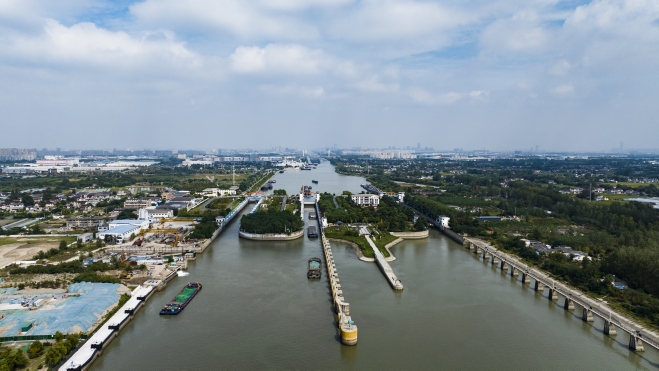 9月27日上午,“豫貨出海、周向世界”采訪組B組來到位于揚(yáng)州市長江北岸的施橋船閘。古鎮(zhèn)施橋,長江與大運(yùn)河在這里交匯,施橋船閘就位于這個交匯點(diǎn)上。