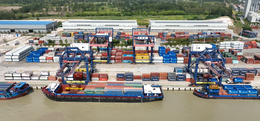 繁忙的淮安港。在自動(dòng)化集裝箱碼頭,貨船頻繁進(jìn)出,集裝箱不斷被起重機(jī)吊起、裝運(yùn),繁榮忙碌而又秩序井然。據(jù)了解,目前淮安全市碼頭岸線28公里,港區(qū)7個(gè)、碼頭116座、泊位389個(gè),其中千噸以上泊位92個(gè),年設(shè)計(jì)吞吐能力1.1億噸,其中集裝箱碼頭吞吐能力50萬標(biāo)箱。2021年,淮安被交通運(yùn)輸部確定為“全國內(nèi)河主要港口”。運(yùn)行內(nèi)河集裝箱航線14條,上游覆蓋河南周口、山東、湖北、安徽等地,下游通達(dá)銜接江蘇沿江沿海、上海等地。2021年完成集裝箱吞吐量31.07萬標(biāo)箱。