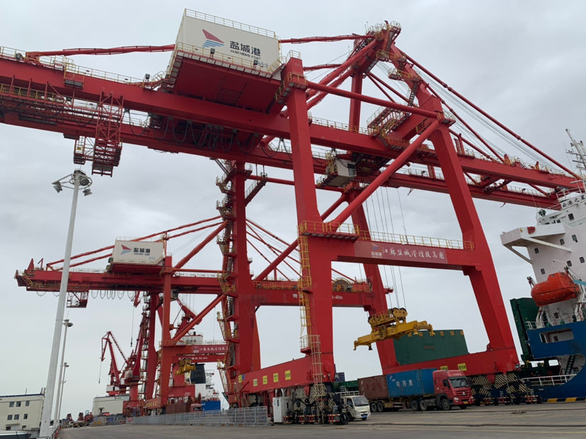 他們的努力得到了巨大回報:2021年,鹽城港吞吐量突破1億噸,同比增長62.38%,集裝箱吞吐量達(dá)到40萬標(biāo)箱,同比增長50%。按交通運輸部統(tǒng)計數(shù)據(jù),貨物吞吐量和集裝箱吞吐量增速均為全國沿海54個港口第二位。