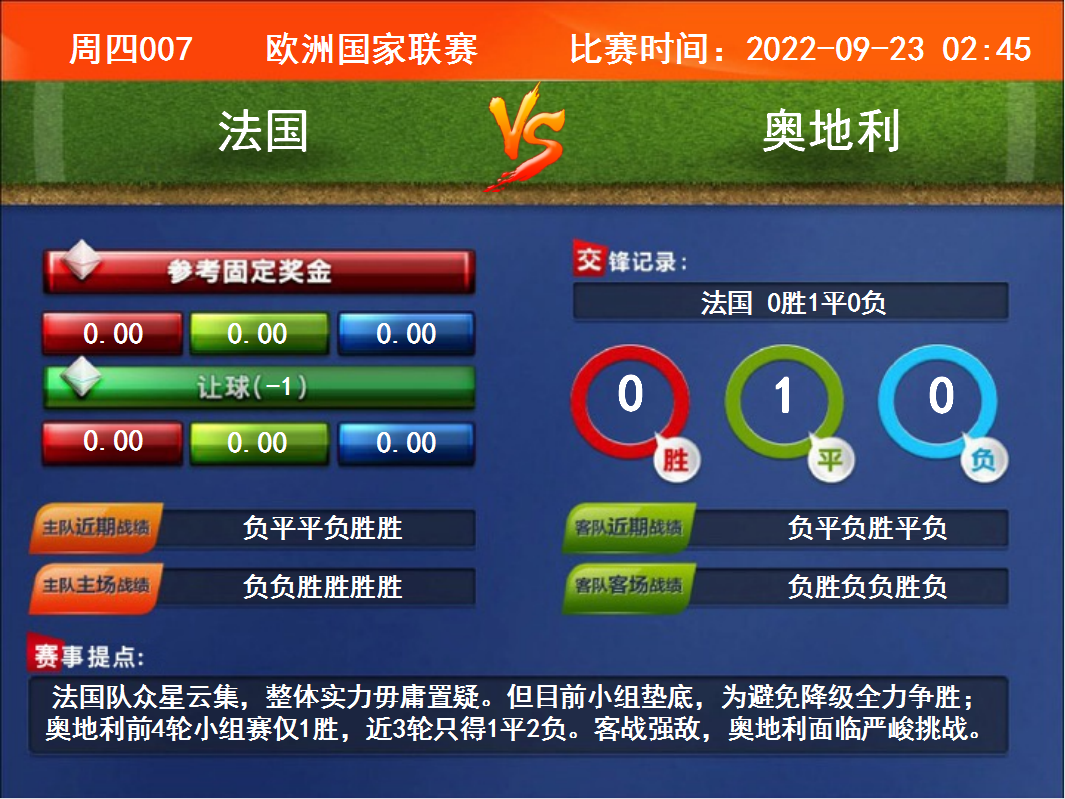 周四007  歐洲國家聯(lián)賽 法國VS奧地利