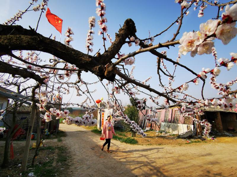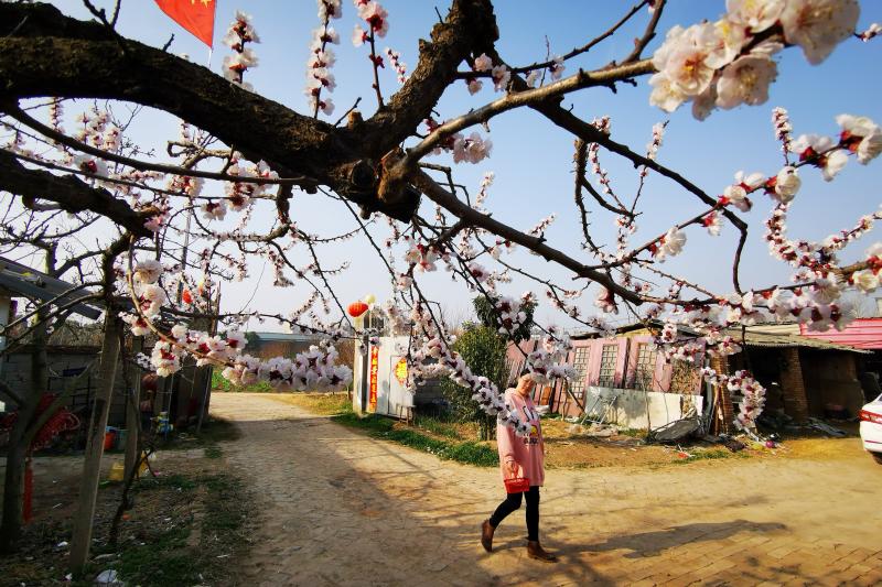 3月8日,在淮陽區(qū)城關鎮(zhèn)小許莊村,幾戶村民的院前或院內(nèi)種植的杏樹花開如云。如今的鄉(xiāng)村,生態(tài)宜居、生活富裕、鄉(xiāng)風文明,成為留得住鄉(xiāng)愁的美麗家園。