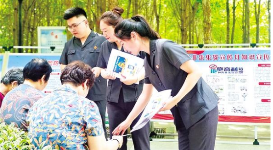 6月15日,項(xiàng)城市在北公園舉行以“守住錢袋子·護(hù)好幸福家”為主題的2023年防范非法集資宣傳月活動(dòng),副市長戶超品走進(jìn)現(xiàn)場,與群眾一起了解如何進(jìn)行識(shí)別非法集資常見的一些“套路”。