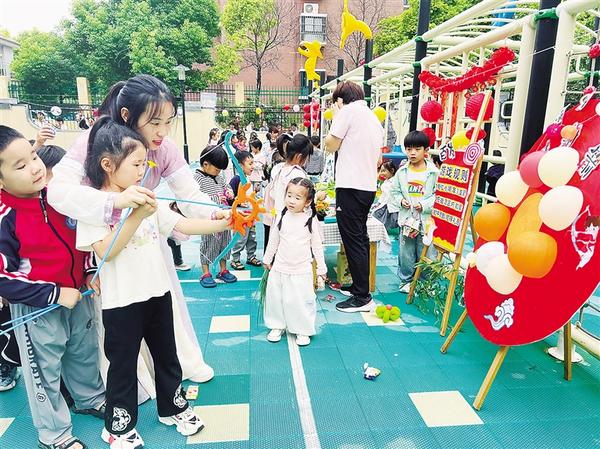 中秋節(jié)前夕,市城鄉(xiāng)一體化示范區(qū)各幼兒園積極組織開展形式多樣、內(nèi)容豐富的慶?;顒?dòng),讓學(xué)生沉浸式感受中華優(yōu)秀傳統(tǒng)文化的獨(dú)特魅力。圖一為老師帶領(lǐng)小朋友體驗(yàn)“后羿射日”游戲。
