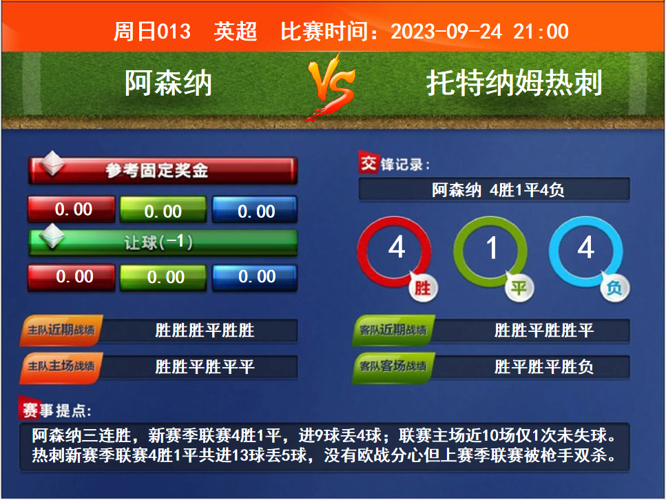 比賽時間:2023-09-24 21:00賽事提點(diǎn):阿森納三連勝,新賽季聯(lián)賽4勝1平,進(jìn)9球丟4球;聯(lián)賽主場近10場僅1次未失球。熱刺新賽季聯(lián)賽4勝1平共進(jìn)13球丟5球,沒有歐戰(zhàn)分心但上賽季聯(lián)賽被槍手雙殺。