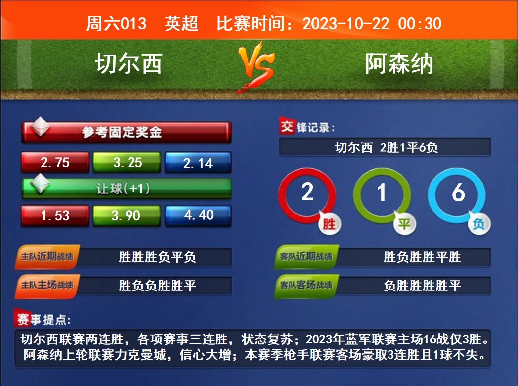 周六013 英超 切爾西VS 阿森納 2023-10-22 00:30