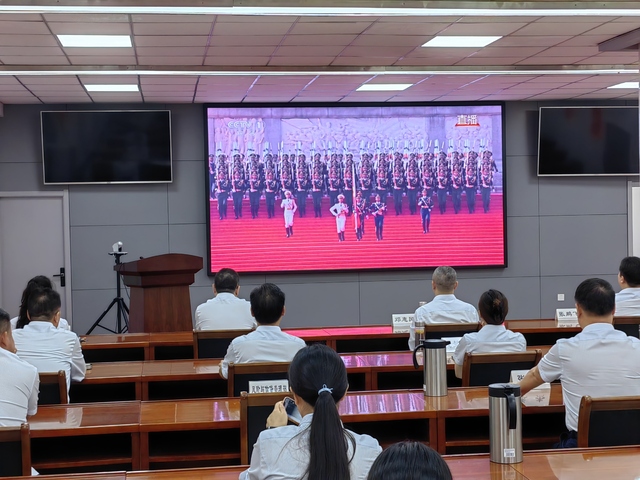 收看過程中,大家心情澎湃,感慨萬千。現(xiàn)場氣氛莊重而熱烈,大家全神貫注,聆聽習(xí)近平總書記重要講話,滿懷激動與自豪的觀看閱兵儀式的全過程。當(dāng)威武雄壯的三軍儀仗隊邁著鏗鏘有力的步伐率先通過天安門廣場時,當(dāng)一個個裝備方隊展示著彰顯國家實力的現(xiàn)代化尖端武器時,當(dāng)戰(zhàn)機梯隊以恢宏陣勢呼嘯掠過蒼穹時,大家內(nèi)心迸發(fā)出由衷的贊嘆,為祖國日益強盛而自豪。