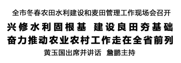 本報(bào)訊 (記者 王艷) 12月12日,全市冬春農(nóng)田水利建設(shè)和麥田管理工作現(xiàn)場(chǎng)會(huì)在商水召開,深入學(xué)習(xí)貫徹習(xí)近平總書記在河南考察時(shí)重要講話精神和關(guān)于“三農(nóng)”工作、治水興水的重要論述,全面落實(shí)全省冬春農(nóng)田水利建設(shè)和麥田管理視頻會(huì)議部署,分析研判當(dāng)前形勢(shì),安排部署重點(diǎn)任務(wù),扎實(shí)推進(jìn)今冬明春農(nóng)田水利建設(shè)和麥田管理等重點(diǎn)工作。市委書記黃玉國(guó)出席并講話。市長(zhǎng)詹鵬主持。