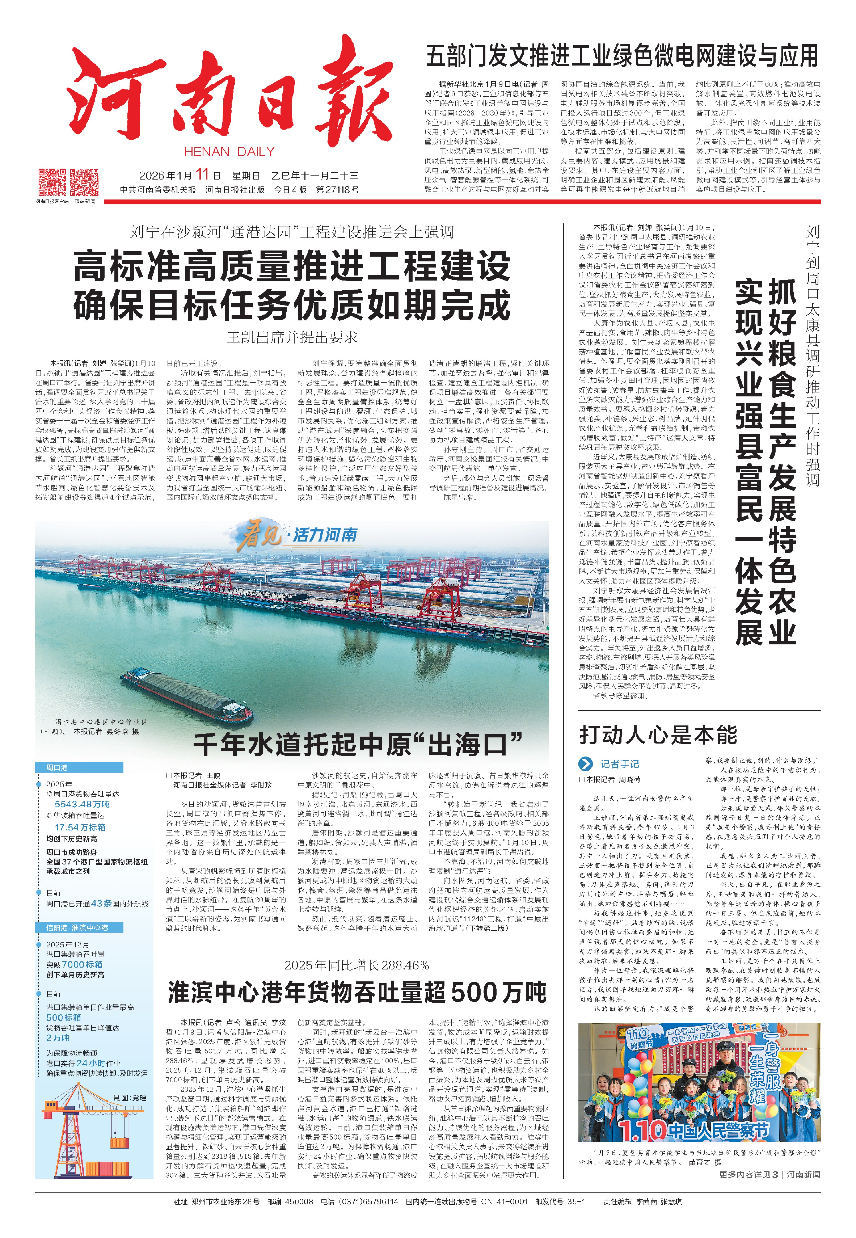 漯河港、平頂山港相繼開港運(yùn)營;周口港中心港區(qū)中心作業(yè)區(qū)一期工程去年年底建成投用,標(biāo)志著河南內(nèi)河集裝箱運(yùn)輸邁入“百萬標(biāo)箱時(shí)代”;沙潁河“通港達(dá)園”工程開工建設(shè),進(jìn)一步完善我省水運(yùn)網(wǎng)絡(luò),服務(wù)和融入新發(fā)展格局。