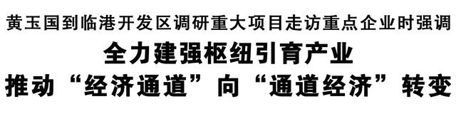本報訊 (記者 王艷) 4月1日,市委書記黃玉國到臨港開發(fā)區(qū)調研重大項目、走訪重點企業(yè),強調要瞄準功能定位,發(fā)揮特色優(yōu)勢,在建強樞紐、引育產業(yè)上下功夫,推動“經濟通道”向“通道經濟”轉變。