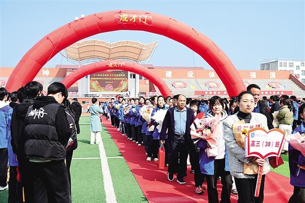 2月27日上午,淮陽中學(xué)運動場上洋溢著青春的氣息,一支支朝氣蓬勃的隊伍走過成人門。