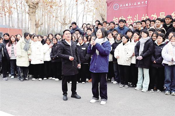 12月20日,黨的二十大代表、全國(guó)最美教師劉秀祥(前左)到扶溝縣第二高級(jí)中學(xué)開(kāi)展“弘揚(yáng)踐行教育家精神”“傳承紅色基因、學(xué)思踐悟中國(guó)共產(chǎn)黨人精神譜系”活動(dòng),結(jié)合自己的成長(zhǎng)經(jīng)歷,引導(dǎo)學(xué)生立報(bào)國(guó)強(qiáng)國(guó)大志向、做挺膺擔(dān)當(dāng)奮斗者。