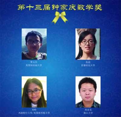 中國數學會21日揭曉了第十三屆華羅庚數學獎、第十六屆陳省身數學獎和第十三屆鐘家慶數學獎的獲獎名單。今年獲得鐘家慶數學獎的分別是美國斯坦福大學的樊玉偉(來自河南周口)、首都師范大學的張蕊、西南財經大學和美國密西根大學的周嶺、浙江大學的周青龍等4名博士生。……[詳細]