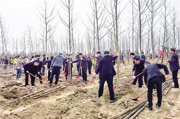 3月13日上午,我市社會(huì)各界群眾來(lái)到中心城區(qū)植樹(shù)基地開(kāi)展2025年春季義務(wù)植樹(shù)活動(dòng)。今年中心城區(qū)植樹(shù)基地選址在市城鄉(xiāng)一體化示范區(qū)引黃調(diào)蓄湖東南部,種植有水杉、銀杏、垂絲海棠、高桿石楠等樹(shù)種。