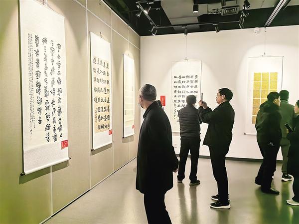 3月14日,市民在周口美術(shù)館觀展。由中共河南省委宣傳部、河南省文學(xué)藝術(shù)界聯(lián)合會(huì)指導(dǎo),河南省美術(shù)家協(xié)會(huì)、河南省書(shū)法家協(xié)會(huì)等部門共同主辦的“翰墨潤(rùn)中原——河南省美術(shù)書(shū)法作品大賽獲獎(jiǎng)作品展周口巡展”當(dāng)日開(kāi)展。