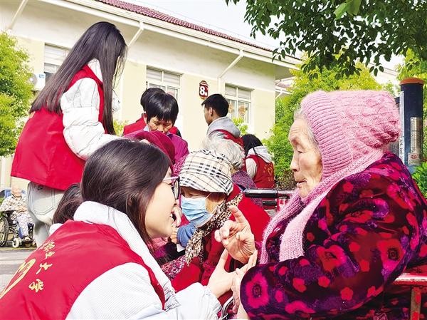 3月15日,志愿者和老人拉家常。當(dāng)日,河南科技職業(yè)大學(xué)組織青年志愿者走進(jìn)周口市老年護(hù)理院,開(kāi)展以“暖心敬老行,情滿夕陽(yáng)紅”為主題的敬老愛(ài)老活動(dòng)。