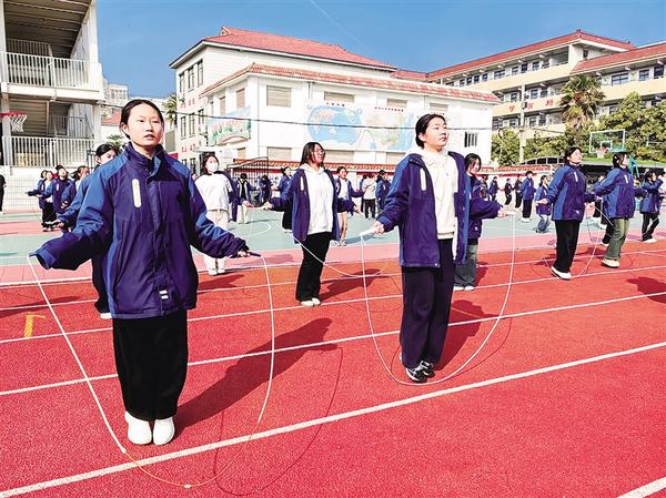 2月26日,周口市第十九初級中學(xué)九年級學(xué)生在大課間跳繩。從2025年春季學(xué)期起,我市全面推動義務(wù)教育階段學(xué)校每天開展兩小時(shí)綜合體育活動。
