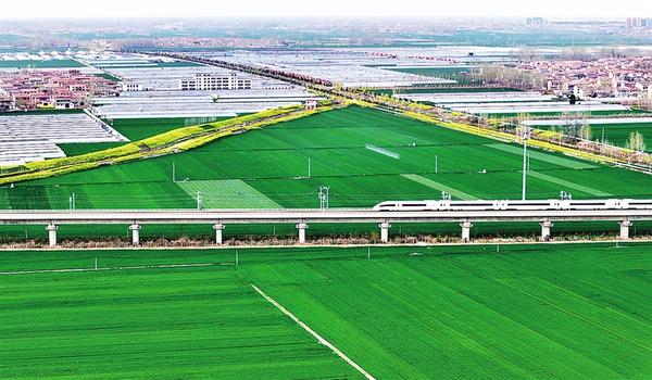 4月11日,一列高鐵列車駛過扶溝縣境內(nèi)廣袤的麥田。近年來,扶溝縣累計建成高標準農(nóng)田119.7萬畝,疏浚治理河道64公里,維修重建閘涵33座,為實現(xiàn)穩(wěn)產(chǎn)增收提供了堅實保障。
