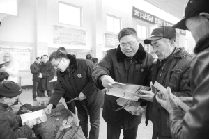 3月6日,“關(guān)愛農(nóng)民工法治宣傳周”集中宣傳活動在周口客運中心站門前舉行,相關(guān)單位設(shè)立咨詢服務(wù)臺,發(fā)放宣傳資料,回答群眾咨詢。記者 王映 攝