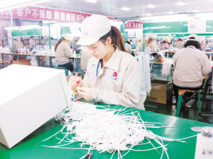 昨日,在三星手機(jī)耳機(jī)供應(yīng)商日立亞電子淮陽有限公司生產(chǎn)車間,工人們正在生產(chǎn)線上忙碌著?;搓柨h近年來積極實(shí)施“工業(yè)強(qiáng)縣、旅游突破、城鄉(xiāng)統(tǒng)籌、四化同步”發(fā)展戰(zhàn)略,不斷調(diào)整工業(yè)產(chǎn)業(yè)結(jié)構(gòu),增加企業(yè)科技含量,以提升產(chǎn)品質(zhì)量和市場(chǎng)競(jìng)爭(zhēng)力,促進(jìn)經(jīng)濟(jì)轉(zhuǎn)型升級(jí)。(記者 侯俊豫 攝)
