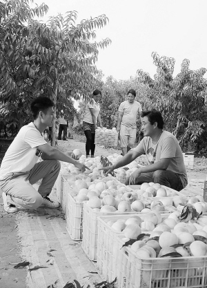 7月4日,扶溝縣江村鎮(zhèn)趙樓村村民正在摘桃出售。近年來(lái),該鎮(zhèn)積極引導(dǎo)農(nóng)民種植桃、梨、蘋(píng)果等優(yōu)質(zhì)小雜果,有效增加了當(dāng)?shù)厝罕姷氖杖搿?/P>