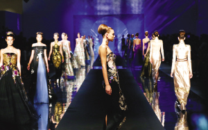 7月13日,在意大利米蘭世博會(huì)南京周閉幕時(shí)裝秀上,模特展示中國設(shè)計(jì)師勞倫斯·許的作品。當(dāng)日,中國高級(jí)定制設(shè)計(jì)師勞倫斯·許的云錦時(shí)裝秀在意大利米蘭世博會(huì)南京周上演,展示了37套由云錦面料制成的高級(jí)定制禮服。