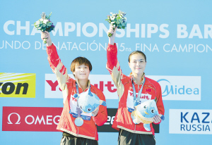 中國(guó)跳水隊(duì)在上屆世錦賽上包攬全部(10塊)金牌。吳敏霞當(dāng)時(shí)與何姿搭檔奪得該項(xiàng)目冠軍。此次,她與施廷懋的“以老帶新”組合也為“夢(mèng)之隊(duì)”的衛(wèi)冕之旅取得開(kāi)門(mén)紅。