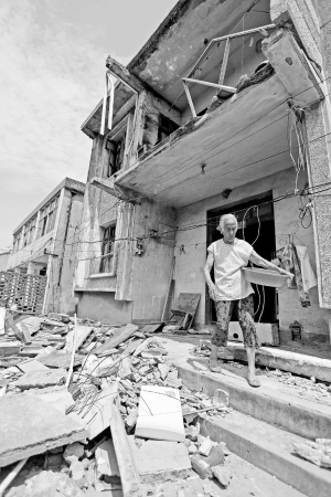 7月21日,一位老人從上海松江田村二村一處受損房屋前走過。